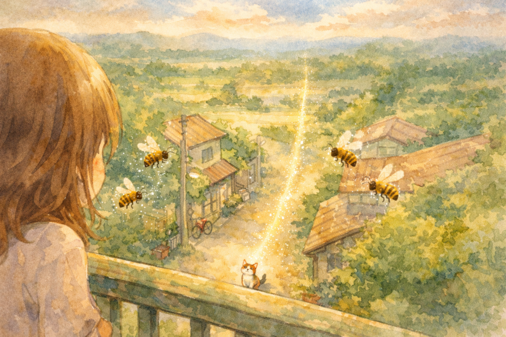 その高さから「視線」を感じ取って、猫がふっと見上げる――」