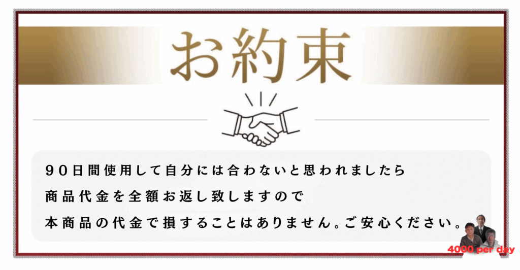 例「90日実践してみましたが効果が感じられなかった為返金お願いします。指定銀行は○○○○」等