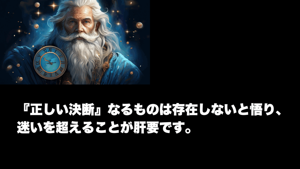 誰もが失敗を恐れ、未来の自分を守りたいと思うものだ。しかし、君が今知っておくべきことがある――『正しい決断』などというものは、この世には存在しないのだよ。