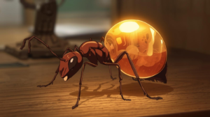 黄金色の丸いアリが、机の上にちょこんとのっていた。
